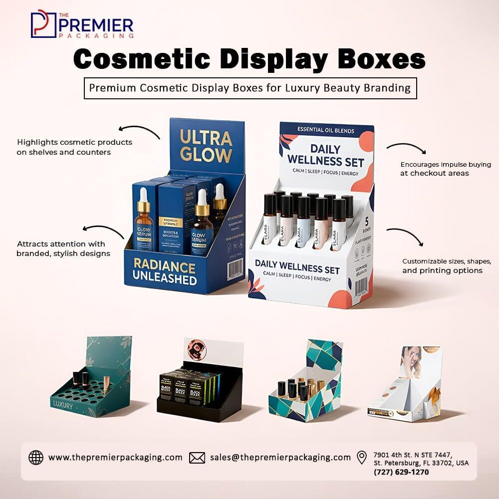 Custom cosmetic display boxes for retail counters & trade shows. Full-colour printing, acrylic & eco options. Make your beauty products stand out.