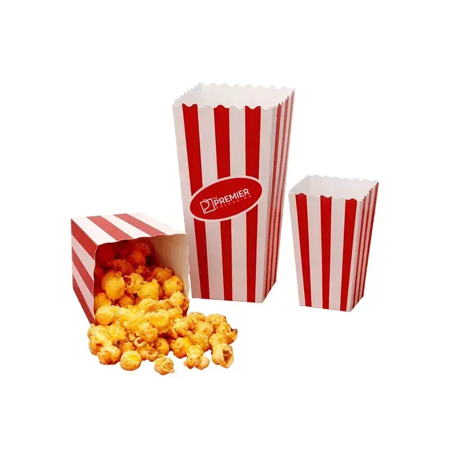Custom popcorn boxes for theaters, events & brands. Eco-friendly materials, full-color printing & bulk pricing. Make every box memorable.